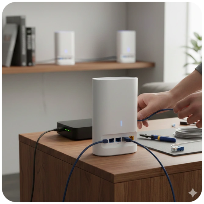 Kein langes Warten auf Pakete oder Rätselraten bei der Hardware-Auswahl. Wir liefern Ihnen die benötigten Geräte – vom modernen WLAN-Router über Mesh-Systeme für volle Reichweite im ganzen Haus bis hin zu professionellen Telefonanlagen – direkt zu Ihnen nach Hause oder in Ihr Geschäft.